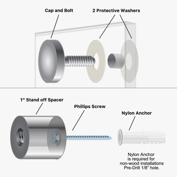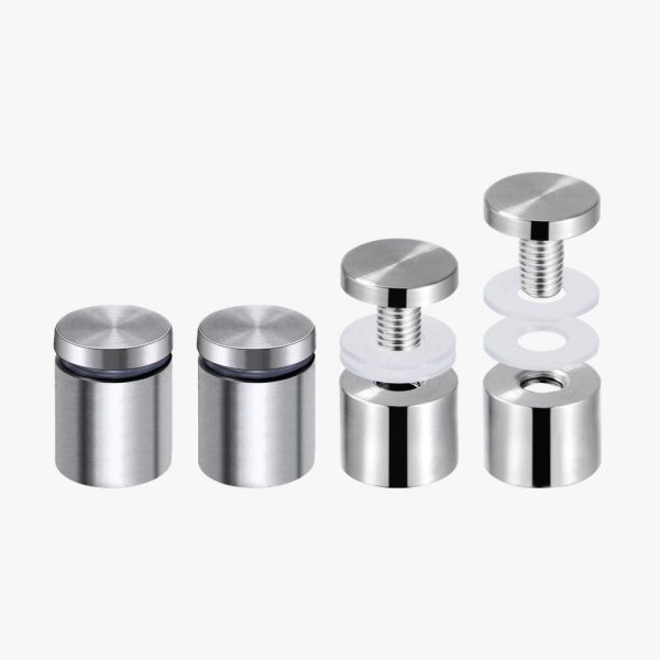 Aluminum Standoffs take any signage into the third dimension. These high polish easy to install standoffs add a modern flair to signs, plaques and any other rigid board mounted design.