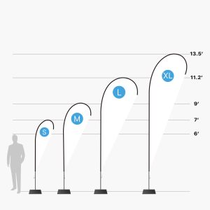 Teardrop flags have an iconic curved flag shape that looks good indoor and out. These full-color dye-sublimated flags offer a large design space.
